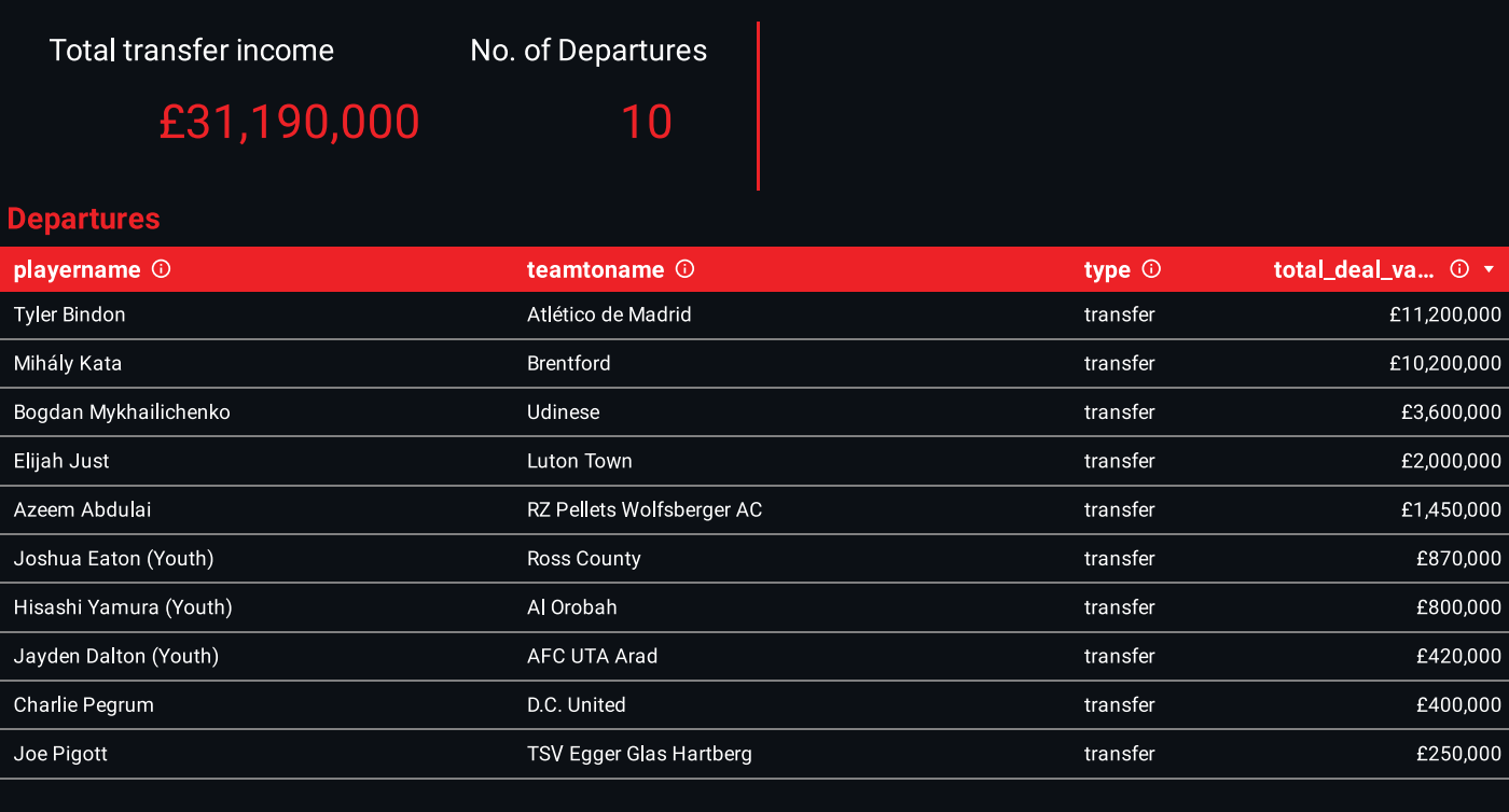 These departures, totaling 7 players in the senior squad, generated significant funds, which were reinvested to strengthen the squad.